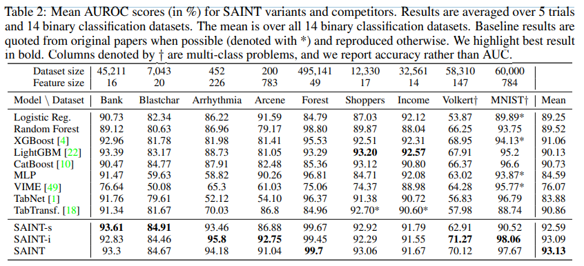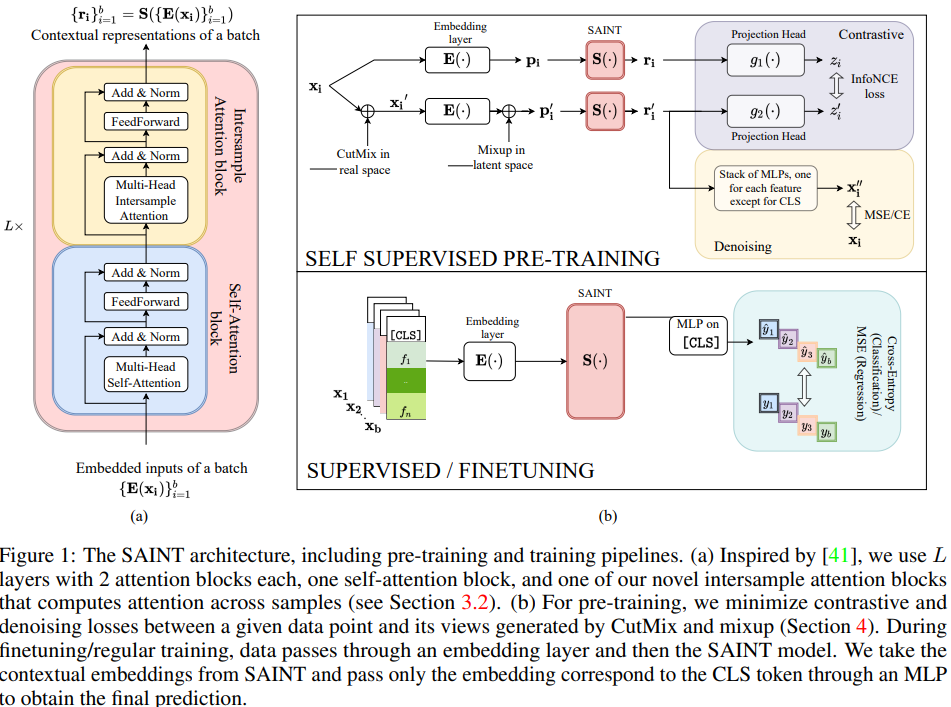 여기에서 taular data를 위해 특화된 SAINT(Self-Attention and Intersample Attention Transformer)를 소개한다.