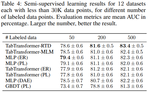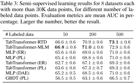 여기에서 TabTransformer-RTD/MLM, MLP(DAE)는 우선 pretrain을 진행하고 이후에 fine-tune을 진행한다.
