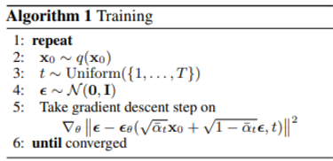 이를 model에 넣어서 noise를 예측하고 실제 noise와 mseloss를 이용해서 학습한다.