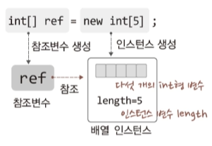 arr = new int[5]; // ๋ฐฐ์ด ์ธ์คํด์ค ์์ฑ