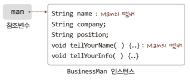 BusinessMan man = new BusinessMan("jolly", "자취 컴퍼니", "Intern"); // 하위클래스 인스턴스 생성