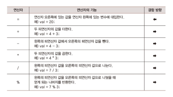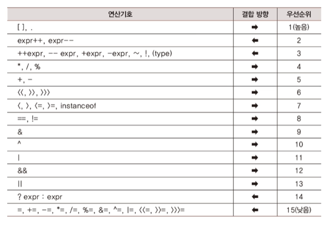 연산의 순서를 결정 짓는 첫번째 요소는 우선순위고, 두번째 요소는 결합방향이다.