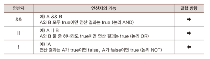 논리 연산자는 피연산자도 true/false의 형태이며, 연산 결과도 true/false의 형태를 갖는다.