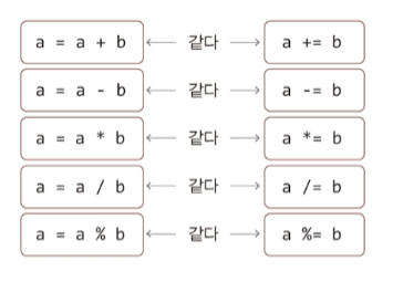 복합 대입 연산자의 종류는 다음과 같다.