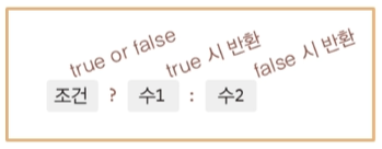 ?์ ์ผํธ์ด true์ด๋ฉด :์ ์ผํธ์ ์๋ ์๊ฐ ๋ฐํ๋๋ค.?์ ์ผํธ์ด false์ด๋ฉด :์ ์ค๋ฅธํธ์ ์๋ ์๊ฐ ๋ฐํ๋๋ค.์์ ๋ฅผ ํตํด ํ์ธํด๋ณด๋๋ก ํ๊ฒ ๋ค.