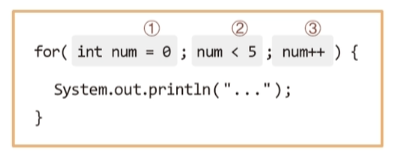 int i = 0; : ๋ณ์์ ์ ์ธ ๋ฐ ์ด๊ธฐํi < 5; : ๋ฐ๋ณต ์กฐ๊ฑด์ด true์ธ์ง ํ์ธSystem.out.println("for ๋ฐ๋ณต: " + i); : ๋ฐ๋ณต ์์ญ ์คํ (๋ฐ๋ณต ์กฐ๊ฑด์ด true์ผ ๊ฒฝ์ฐ)i++ : ๋ณ์์ ๊ฐ ์ฆ๊ฐ๋๋ฒ์งธ ๋ฐ๋ณต ์คํ ์ดํ๋ถํฐ๋ ๋ณ์์ ์ ์ธ ๋ฐ ์ด๊ธฐํ๋ฅผ ์๋ตํ๊ณ ๋ฐ๋ณต์ ์ด์ด๋๊ฐ๊ฒ ๋๋ค.