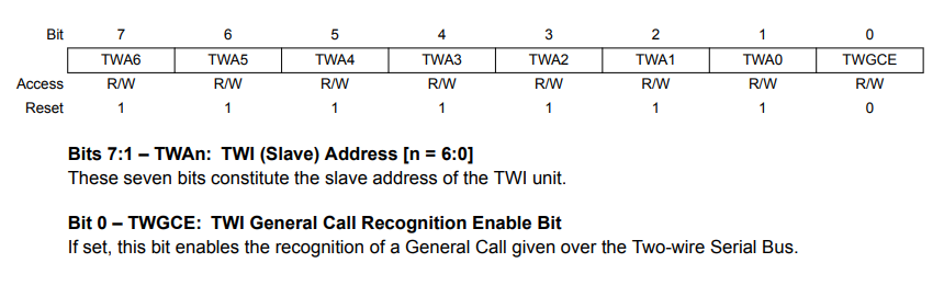 1) TWAn : 7비트 TWI슬레이브 주소를 결정