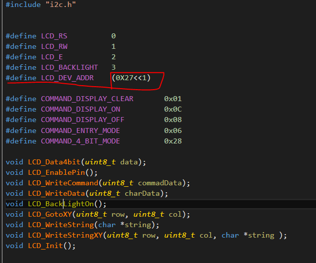 - 아래 내용은 왜 주소한 비트는 쉬프트 연산을 하는지 그 이유이다. 두번째 타이밍도를 보면 0~6번까지는 Slave의 주소를 보내주고 마지막 한 비트는 주소를 입력해주기 위해서 R/W값을 0으로 해줘야합니다. 우리는 지금 현재 레지스터에 값을 쓰기만 하기 때문에 이렇게 주소에 한비트를 밀어주면 R/W에 들어갈 값이 0이기 때문에 다음처럼 쉬프트 연산을 사용해 한비트를 밀어줍니다.