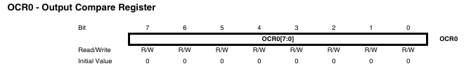 OCR0(OutPut Compare Register)에 값을 설정해줘야한다.