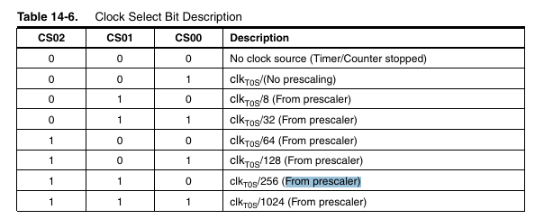 TCCrn 의 CS0n비트들로 우리는 클록을 선택할 수 있었다. 이를 활용해 TiMSK와TIFR레지스터로 인터럽트(2가지 Compare Match interrupt, OverFlow interrupt)를 활성화 시킬 수 있다.TIMSK레지스터 중 Timer/Counter 0번 과 관련 있는 비트는 OCEI0와 TOIE0이다 OCEI0비트는 Compare Match interrupt활성화를 위해 사용하고 TOIE0 비트는 OverFlow interrupt 활성화를 위해 사용된다.TIFR 레지스터의 해당 비트가 먼저 세트된다. TIFR레지스터는 해당 비트가 세트 되었을 때 TIMSK레지스터의 해당 비트 역시 세트된 상태라면 실제로 Interrupt가 발생한다.