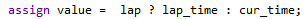 lap버튼을 T F/F의 입력으로 받고 출력을 lap으로 하여 lap버튼이 눌렸을때 led가 들어오게 한다. lap이 눌렸을때 현재 타이머에 나오는 시간을 우리는 value의 값(min_10,min_1, sec_10, sec_1)을 fnd_Controller로 넘겨서 FND에 표시한다. 우리는 이 value의 값을 cur_time이라는 변수에 저장해둔다. 그러면 btn_lap = 1일때 즉, lap버튼이 눌렸을때 reg로 선언된 lap_time에 시간값을 저장해둔 cur_time의 값을 할당한다. 이렇게 되면 lap버튼을 눌렀을 때 시간이 저장되고 value가 lap이 눌렸을때는 lap_time이 value로 들어가서 FND에 lap_time에 저장된 타이머 값이 나오게 되고 lap버튼이 눌리지 않았으때는 cur_time에 카운트되는 카운트 값이 FND에 표시된다. 이때 cur_time에는 lap버튼이 눌렸다고 주기가 멈추지 않기 때문에 계속 Timer가 진행되며 이 타이머 값을 FND에 표시한다.