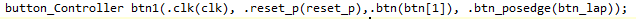 T F/F의 입력으로 받고 출력을lap으로 하여lap버튼이 눌렸을때 led가 들어오게 한다.lap이 눌렸을때 현재 타이머에 나오는 시간을 우리는value의 값(min_10,min_1, sec_10, sec_1)을fnd_Controller로 넘겨서 FND에 표시한다. 또한 이value의 값을cur_time이라는 변수에 저장해둔다. 그러면btn_lap 1일때 즉,lap버튼이 눌렸을때reg로 선언된lap_time에 시간값을 저장해둔cur_time의 값을 할당한다. 이렇게 되면lap버튼을 눌렀을 때 시간이 저장되고value가lap이 눌렸을때는lap_time이value로 들어가서 FND에lap_time에 저장된 타이머 값이 나오게 되고lap버튼이 눌리지 않았으때는cur_time에 카운트되는 카운트 값이 FND에 표시된다. 이때cur_time에는lap버튼이 눌렸다고 주기가 멈추지 않기 때문에 계속Timer가 진행되며 이 타이머 값을 FND에 표시한다.