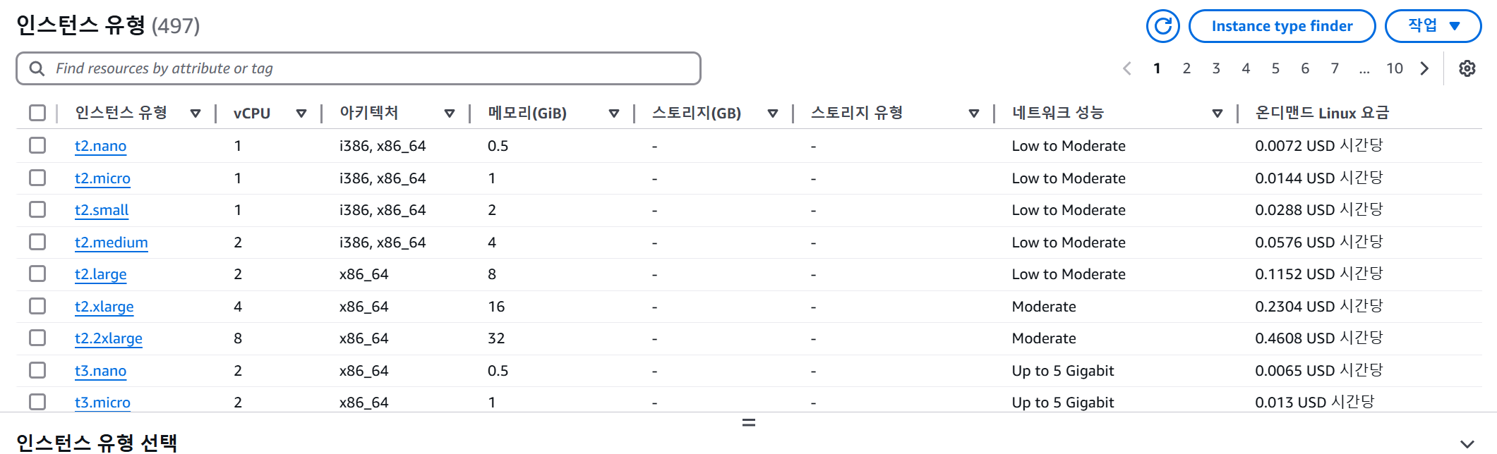- 세대: 인스턴스의 세대 (예: 최신 세대 t4, 이전 세대 t3)