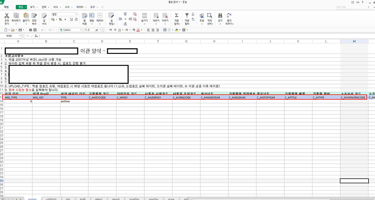 // 엑셀 필수값 (mig_type, mig_key, type, pk값 (doc_id, c_aikeycode 등)이 null인 경우 해당 로우 제외
