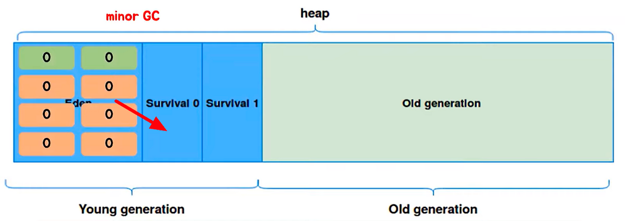 이 Young Generation 영역은 세부적으로 Eden / Survivor0 / Survivor1 영역으로 나뉘게 된다.