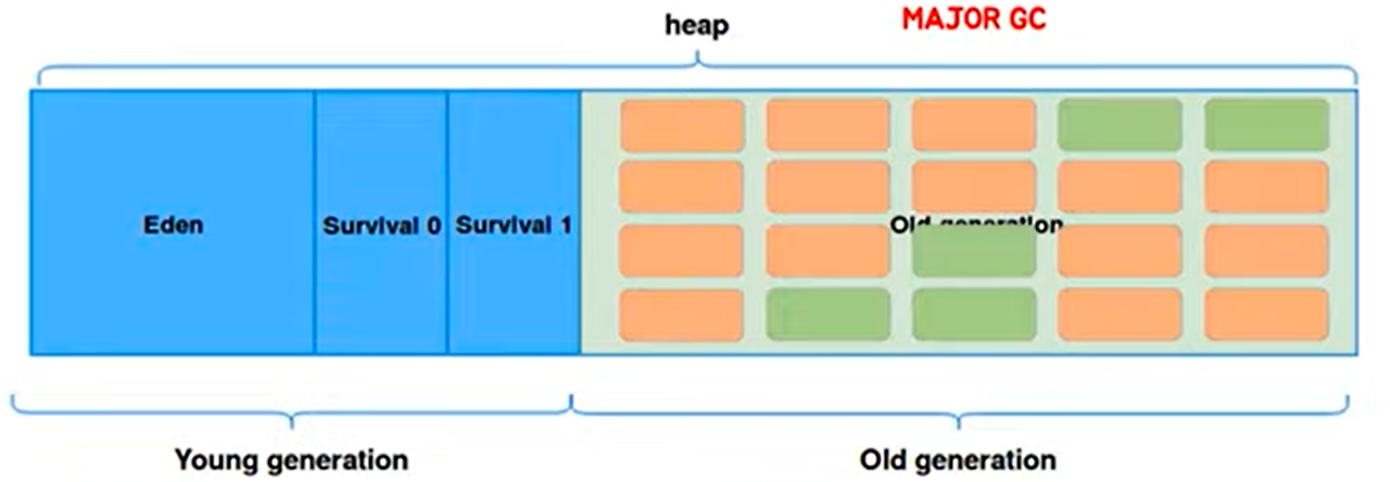 이 영역은 대부분 Young Generation 보다 큰 메모리 공간을 할당 받아서 GC가 자주 발생하지는 않는다. 하지만 이 영역에서도 객체가 계속 쌓이다가 메모리가 꽉 차면 GC가 발생하는데 이 것을 Major GC 또는 Full GC라고 한다.