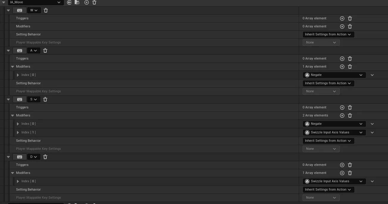 - Modifiers를 통해 입력 값을 음수로 바꾸거나 입력 축의 순서(x, y) → (y, x)를 바꿀 수 있다