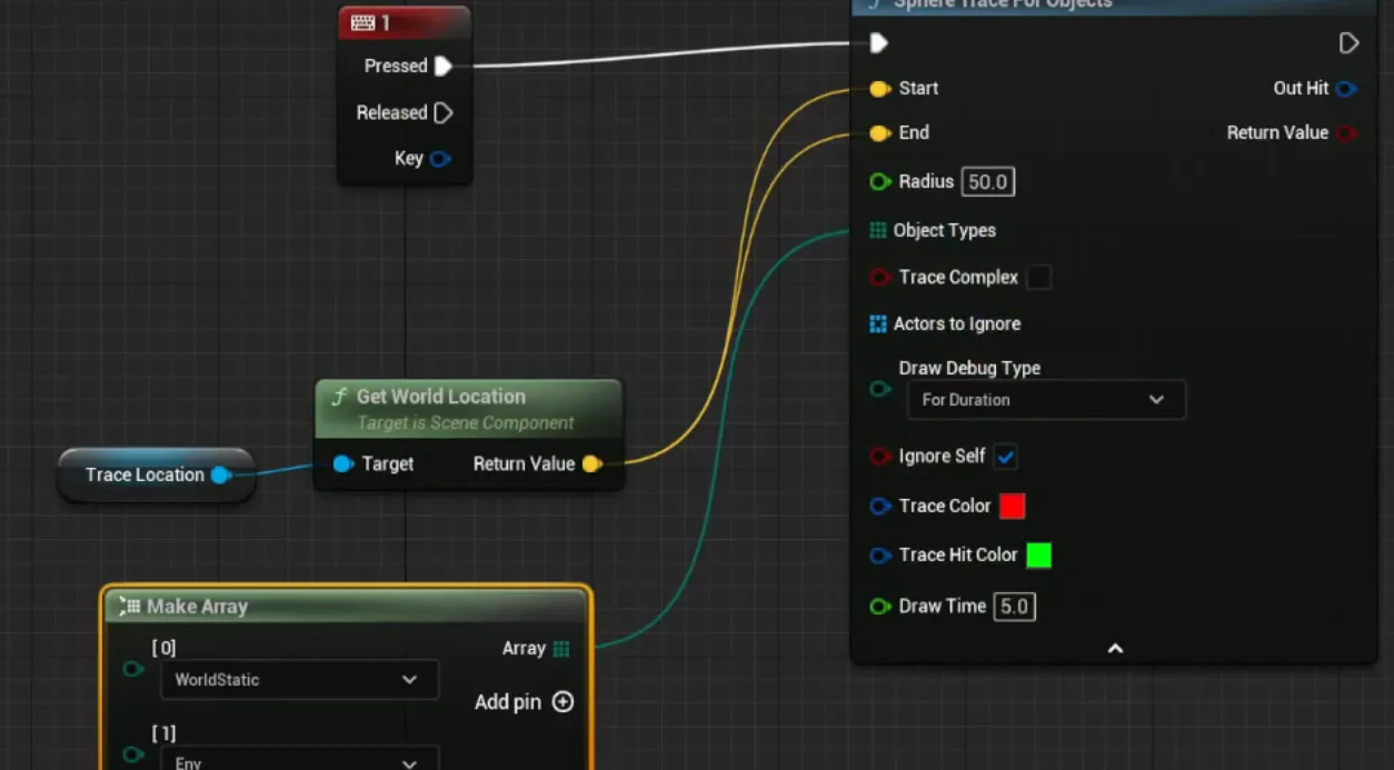 - Actors to Ignore: 배열을 통해 충돌을 무시할 액터 전달