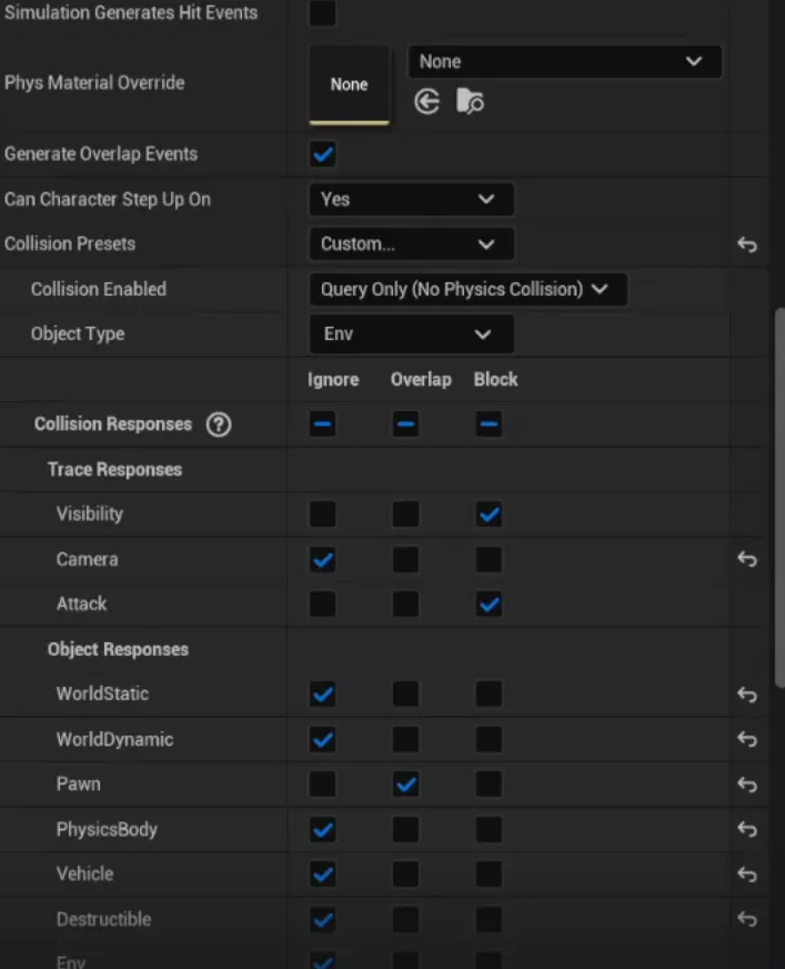 - Pawn을 제외한 나머지는 충돌을 무시하는 Preset이다
