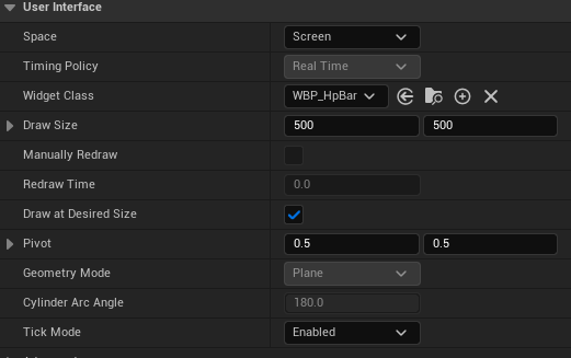 - Draw at Desired Size를 선택하면 Widget Blueprint에서 만든 사이즈로 설정된다.