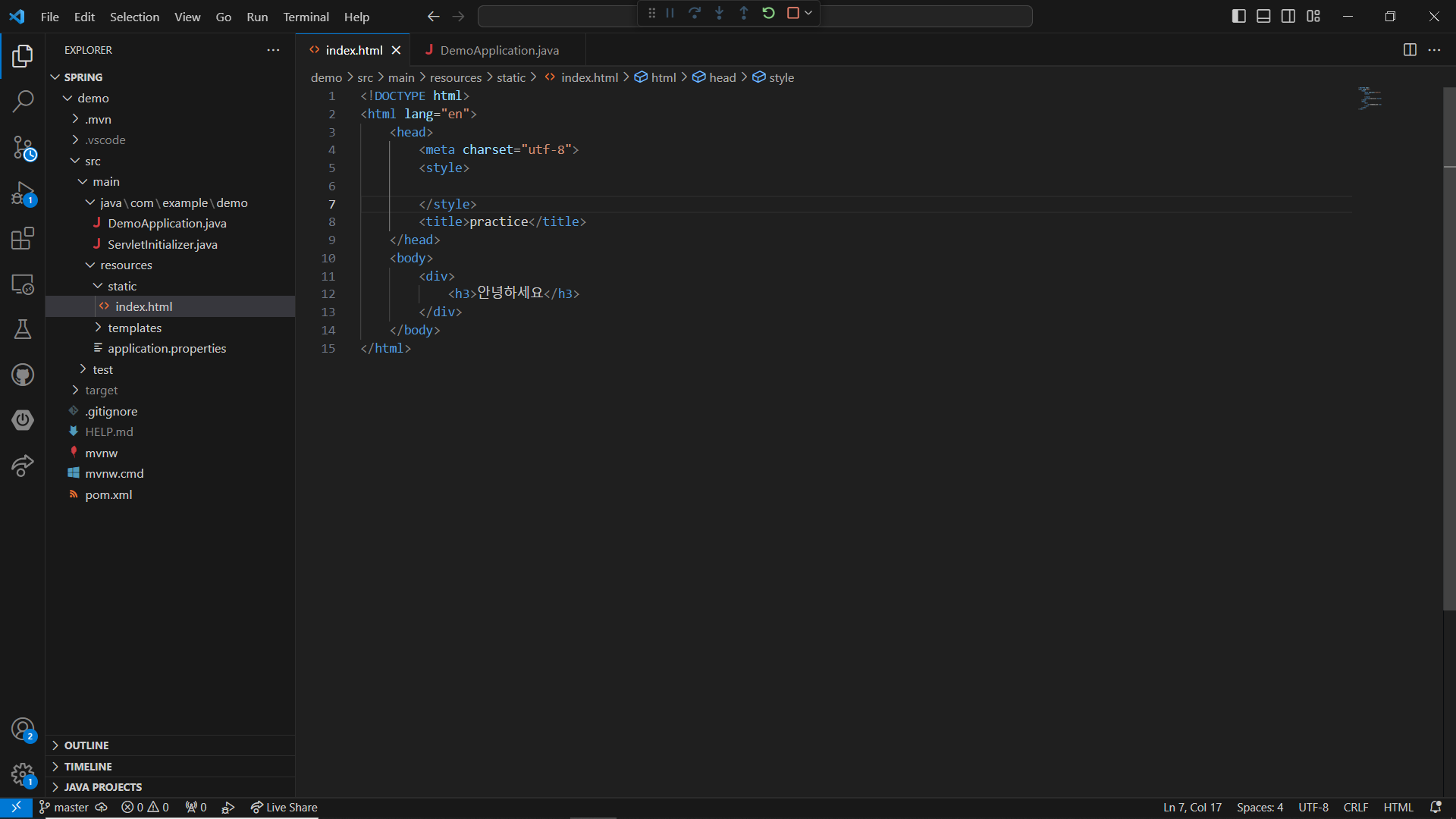 Spring이 잘 설정 되었는지 실행시켜보기위해, 기본적인 html 파일을 생성해 실행해 본다.