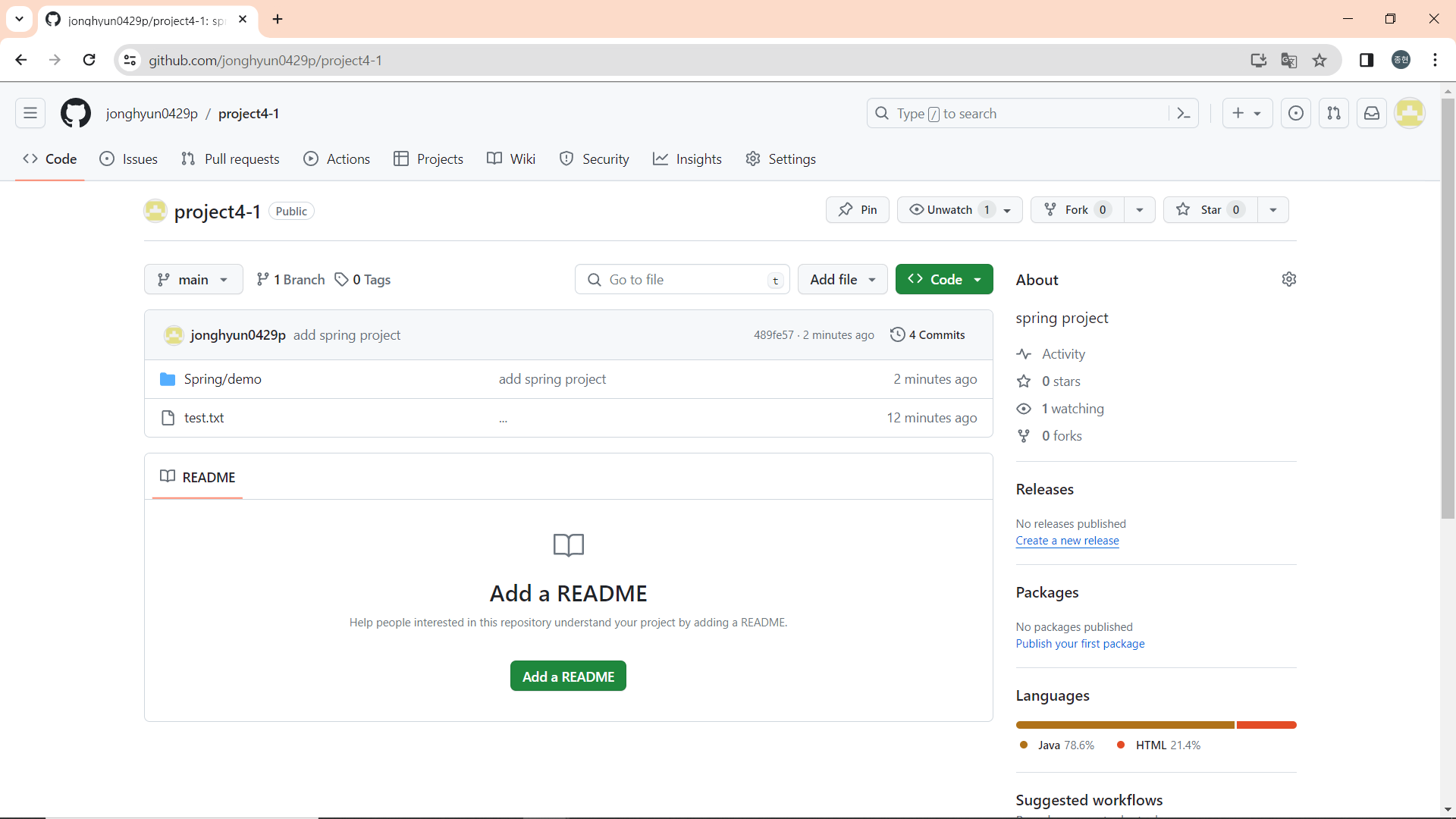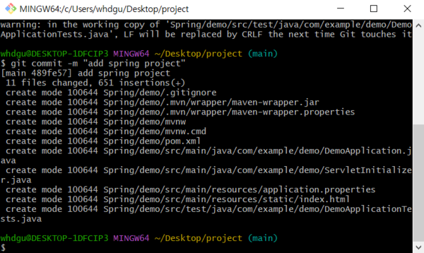 이제 git bash을 이용해 github에 commit할 것이다. 이전에 git bash를 이용해 github와 기본적인 연동을 시킨상태이며, github에 spring 프로젝트를 올릴 예정이다.