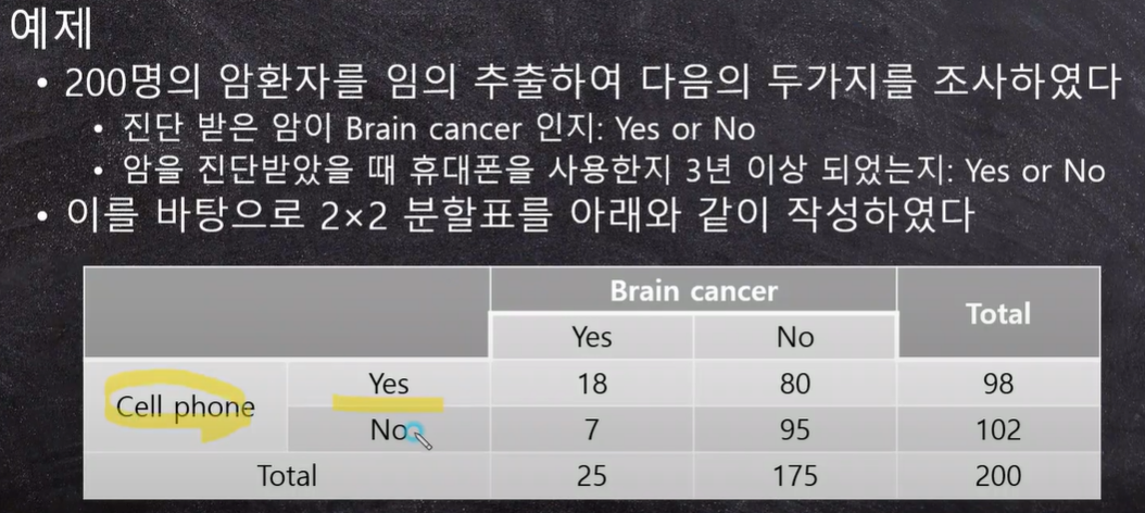 - 만약 상대 위험도가 1이라면 두사건이 발생활 확률은 동일