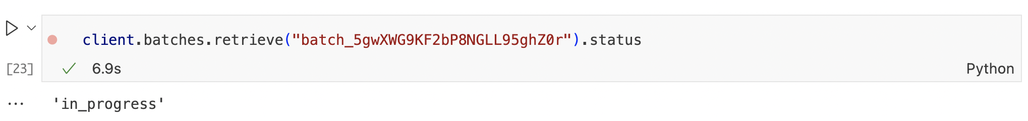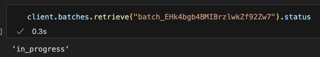 client.batches.retrieve("batch_5gwXWG9KF2bP8NGLL95ghZ0r").status