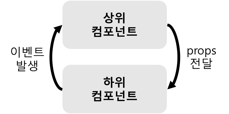 - 서로 데이터를 공유하기 위해서는 props, event 전달 방식을 이용해야 됨.
