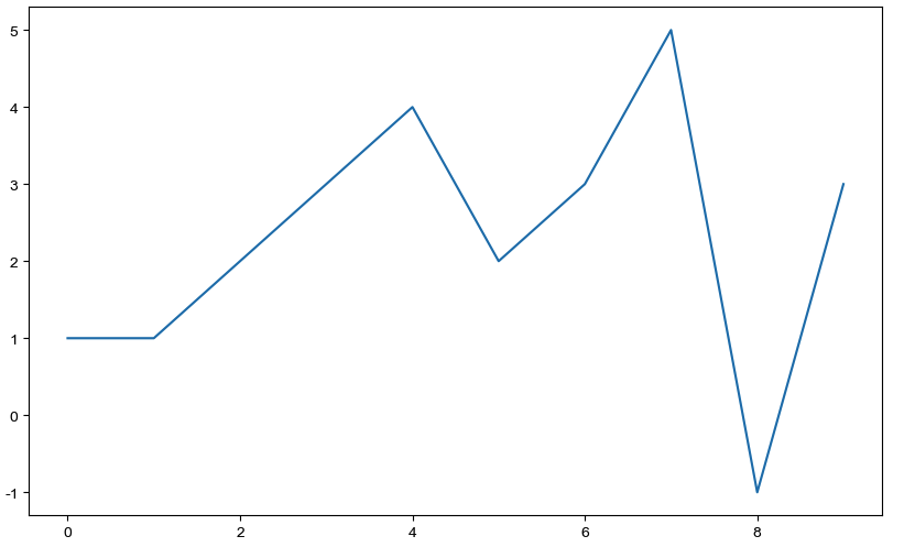 plt.plot([0, 1, 2, 3, 4, 5, 6, 7, 8, 9], [1, 1, 2, 3, 4, 2, 3, 5, -1, 3])