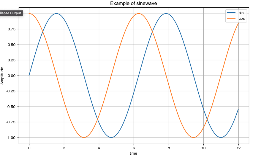 위와 같이 추가하거나 x축, y축 데이터를 의미하는 plot method 뒤에 label="sin"이라고 입력해준다.
