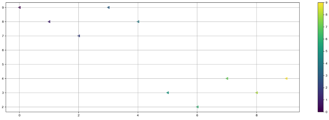 plt.scatter(t, y, s=50, c=colormap, marker="<")