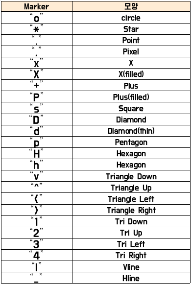 s는 Marker size를 의미하며, 숫자가 커질수록 Marker의 크기도 커진다.