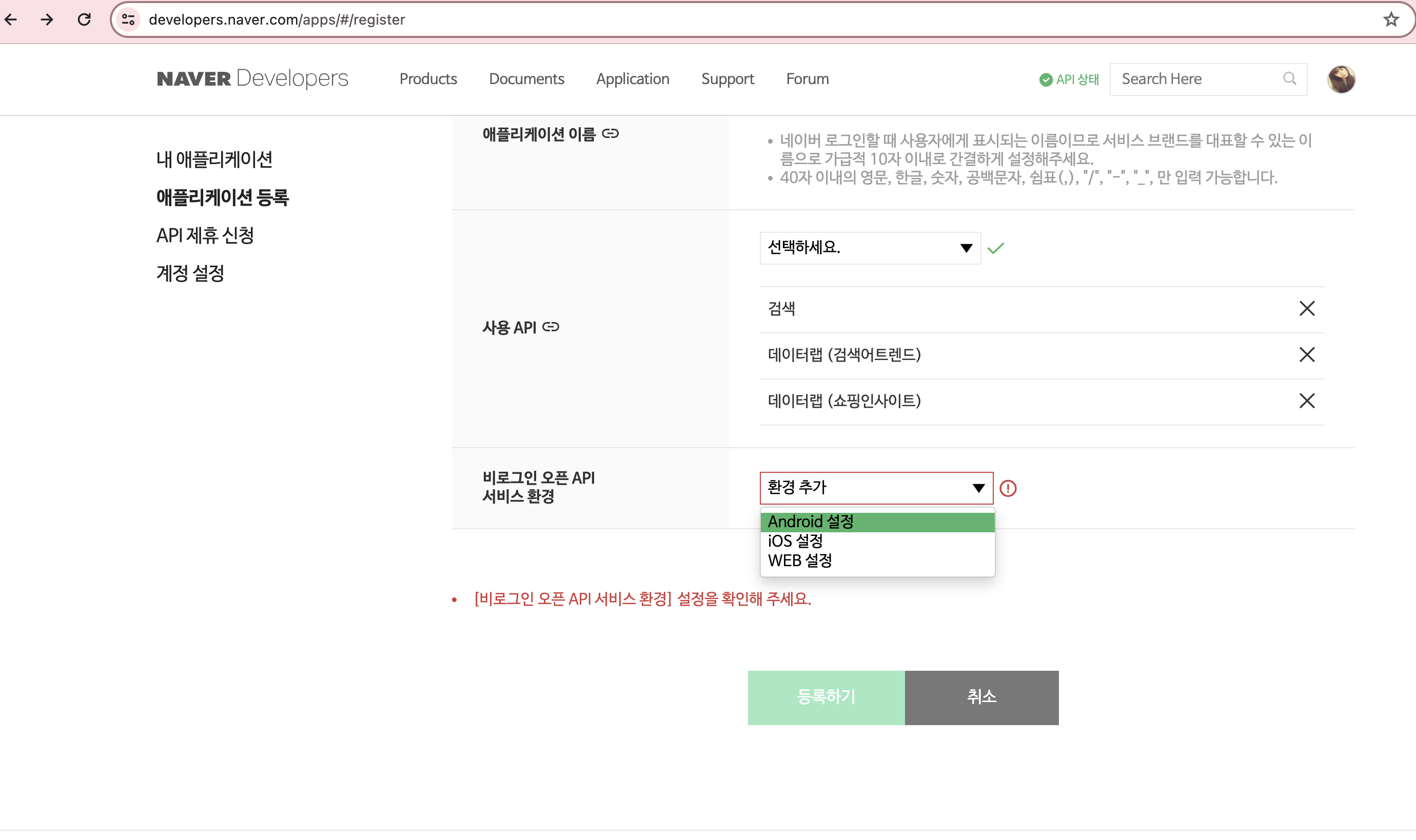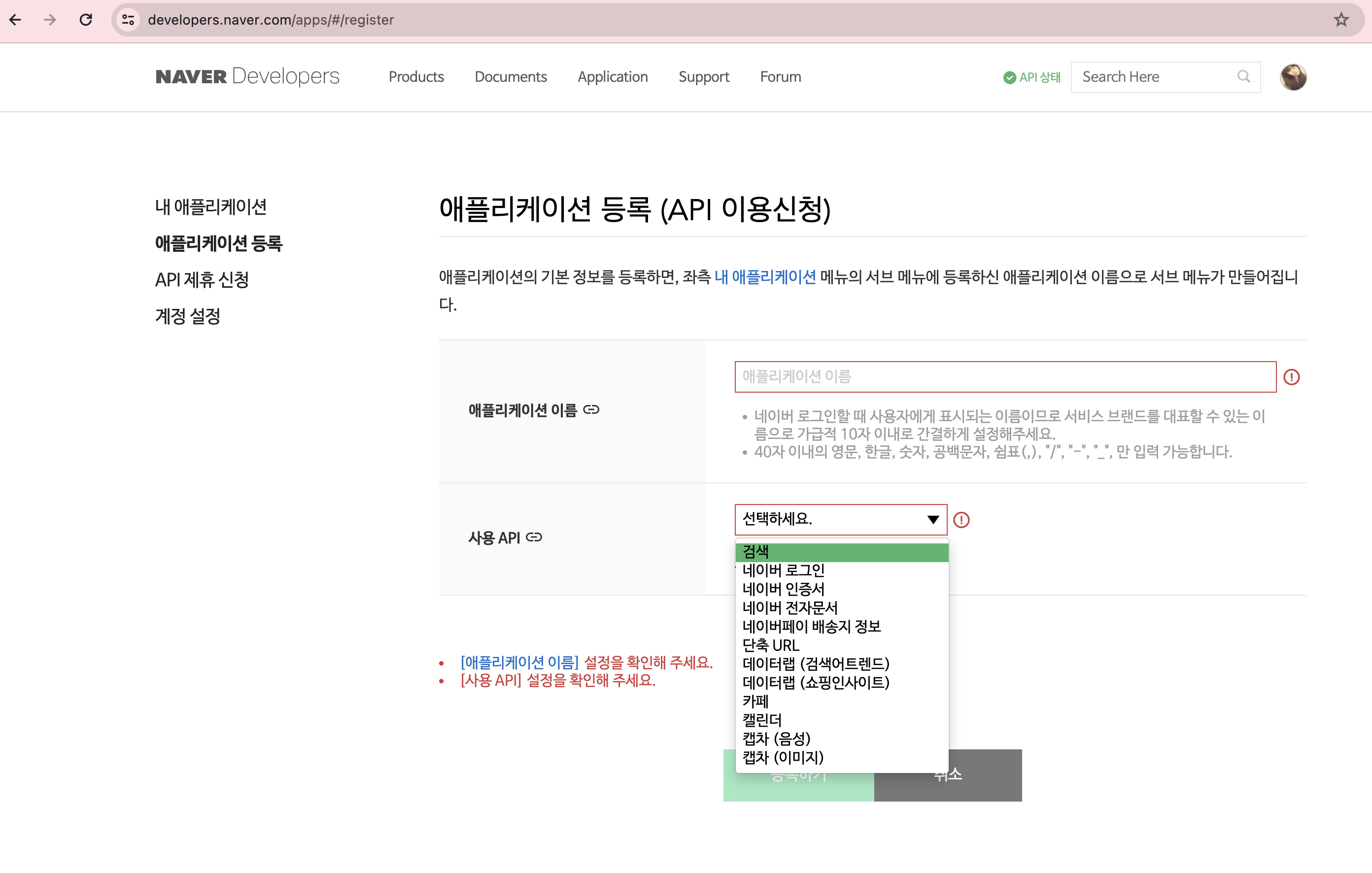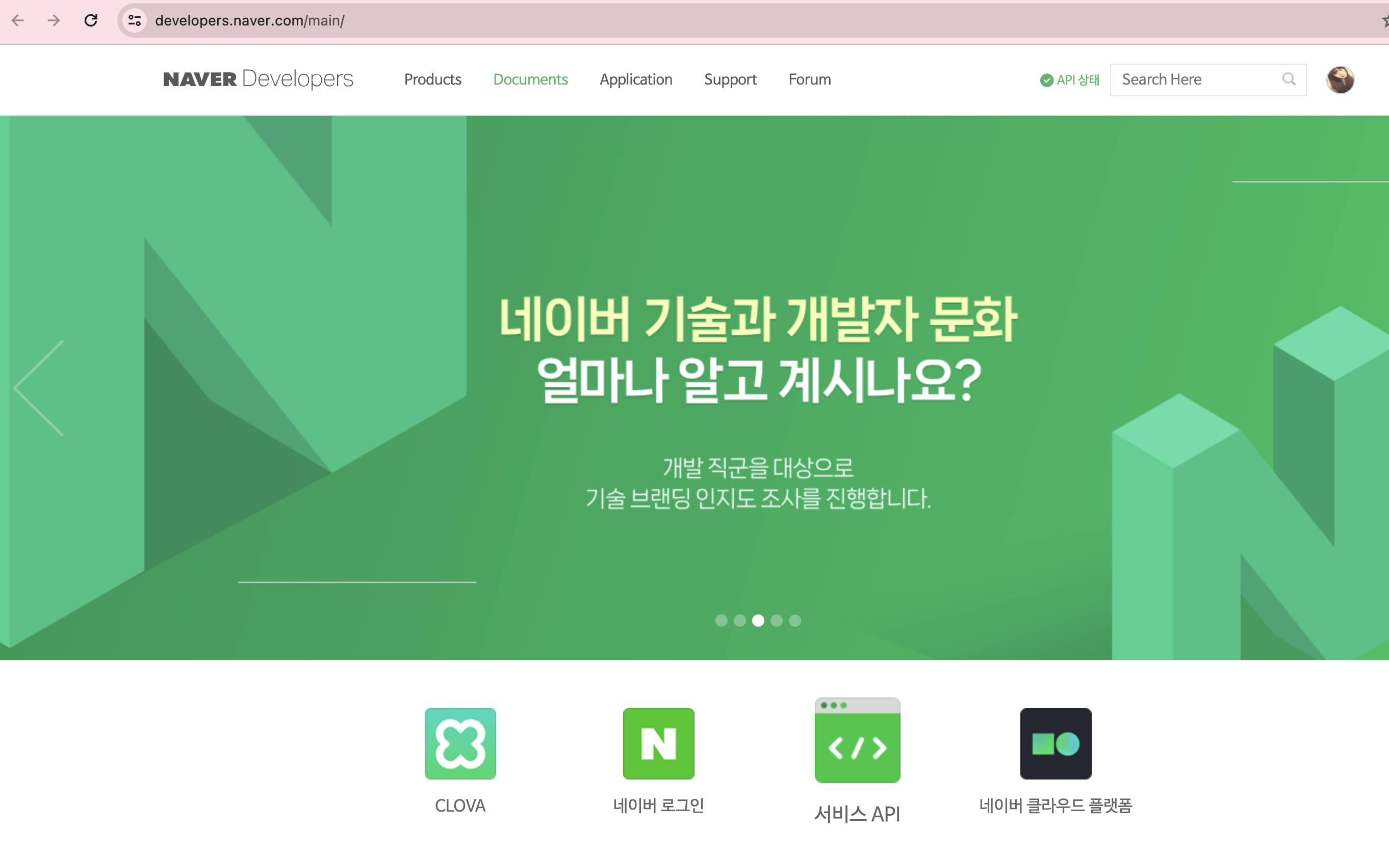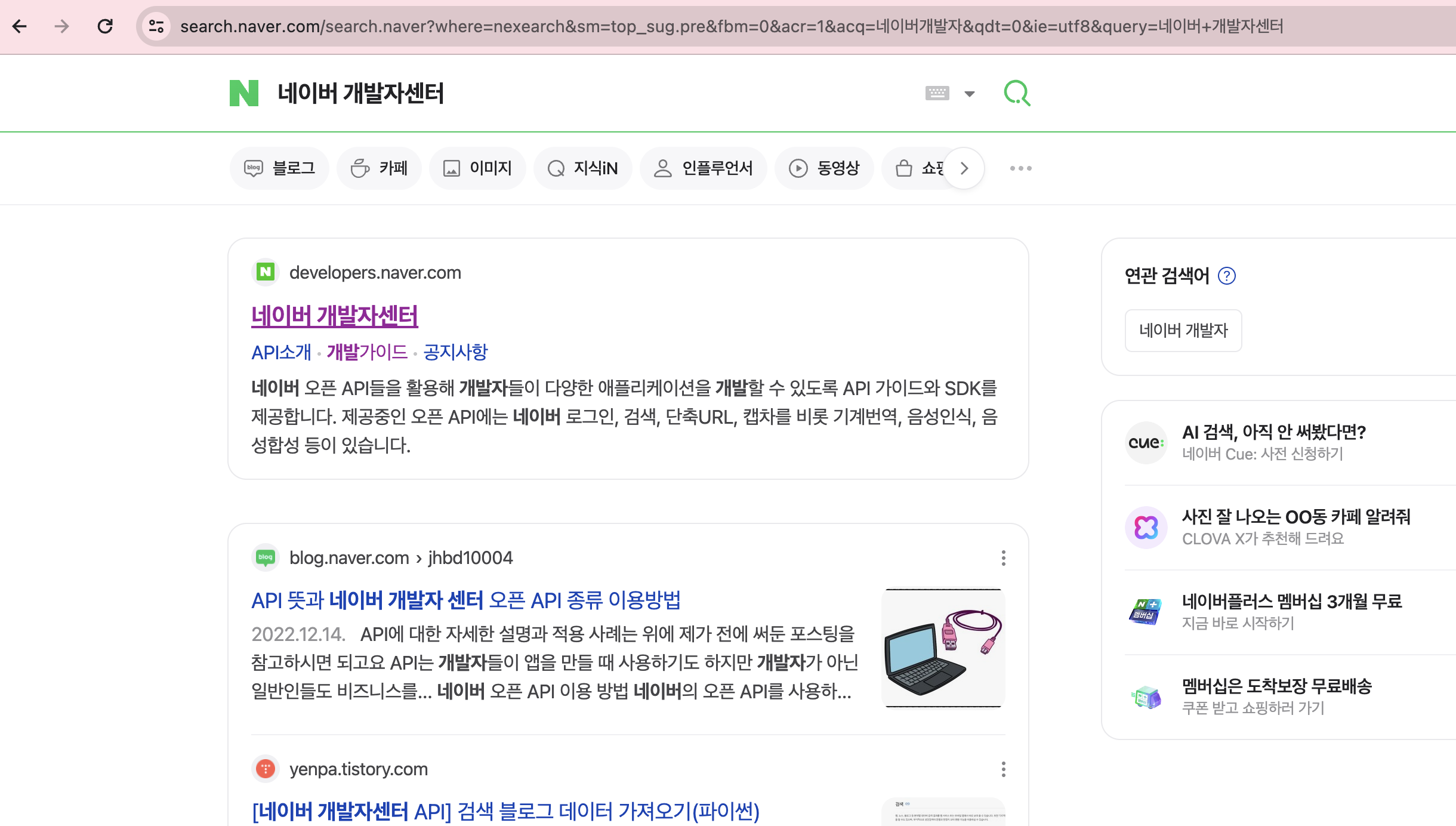 검색 후 상단에 있는 [네이버 개발자센터] click!