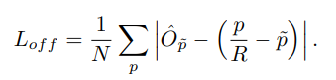 또한, offset에 대한 Loss function도 같이 해줘야 하는데, 이는 Quantization 때문이다. 이 Quantization이 필요한 이유는 Feature map의 저자가 언급한 stride 4를 사용해 원본 이미지보다 줄어들었기 때문.