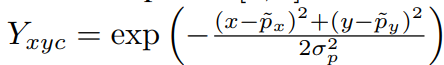 논문을 읽다보면 위의 조건문 Y와 Gaussian distribution의 Y는 다르다. 보기엔 같아보이지만 Gaussian distribution을 통해 나온 Y값은 0과 1사이의 확률값을 갖게 되는데, Loss function에서 사용한 Y는 특정 위치에서의 Y가 1이라는 조건을 나타내고 이는 실제 keypoint의 위치를 의미한다.