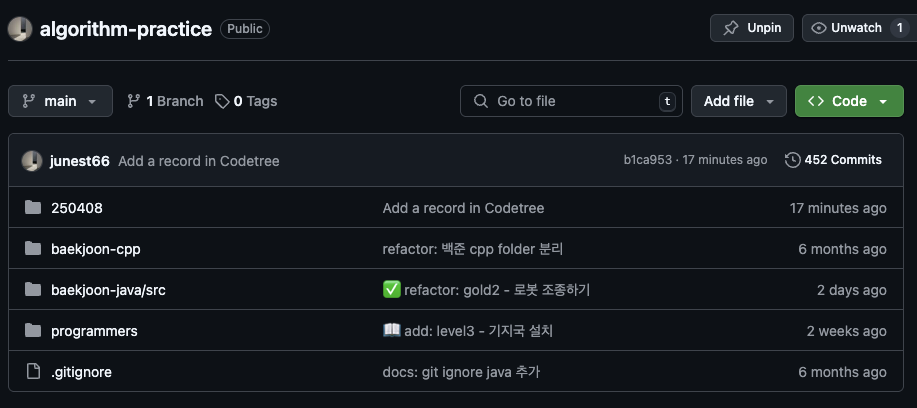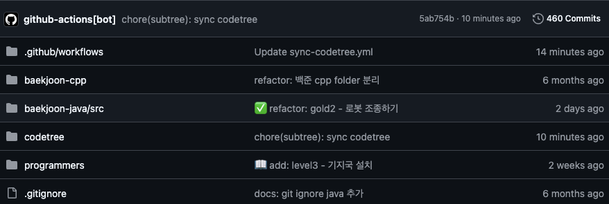 그러면 기존 레포지토리의 구조에서 codetree 폴더가 생성됩니다.