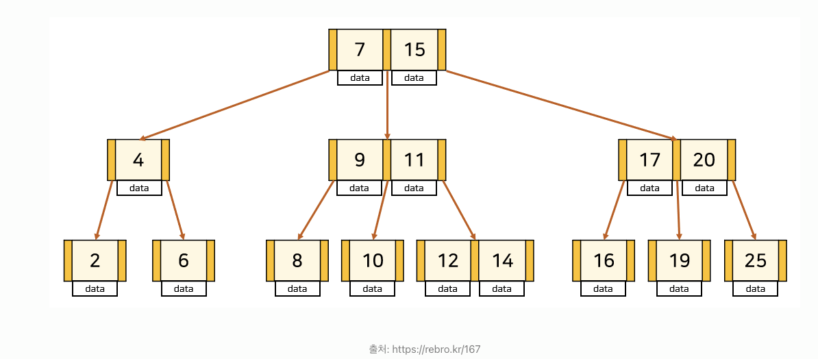 - 하나의 노드에 여러 개의 데이터를 저장할 수 있음