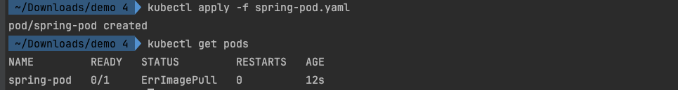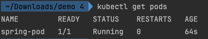 kubectl apply -f spring-pod.yaml # yaml 파일에 적혀져있는 리소스(파드)를 생성