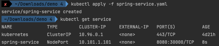 NodePort: 쿠버네티스 내부에서 해당 서비스에 접속하기 위한 포트를 열고 외부에서 접속 가능하도록 한다.ClusterIP: 쿠버네티스 내부에서만 통신할 수 있는 IP 주소를 부여한다. 외부에서는 요청 할 수 없다.LoadBalancer: 외부의 로드밸런서(AWS의 로드밸런서 등)를 활용해 외부에서 접속할 수 있도록 연결한다.이전에 백엔드 서버 3개를 디플로이먼트를 사용하여 띄웠다.