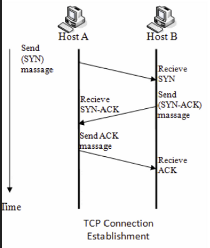 - 통신을 하려면 B에게 허가를 받아야 하므로, A에서 B로 연결 확립 허가를 받기 위한 요청(SYN)을 보낸다.