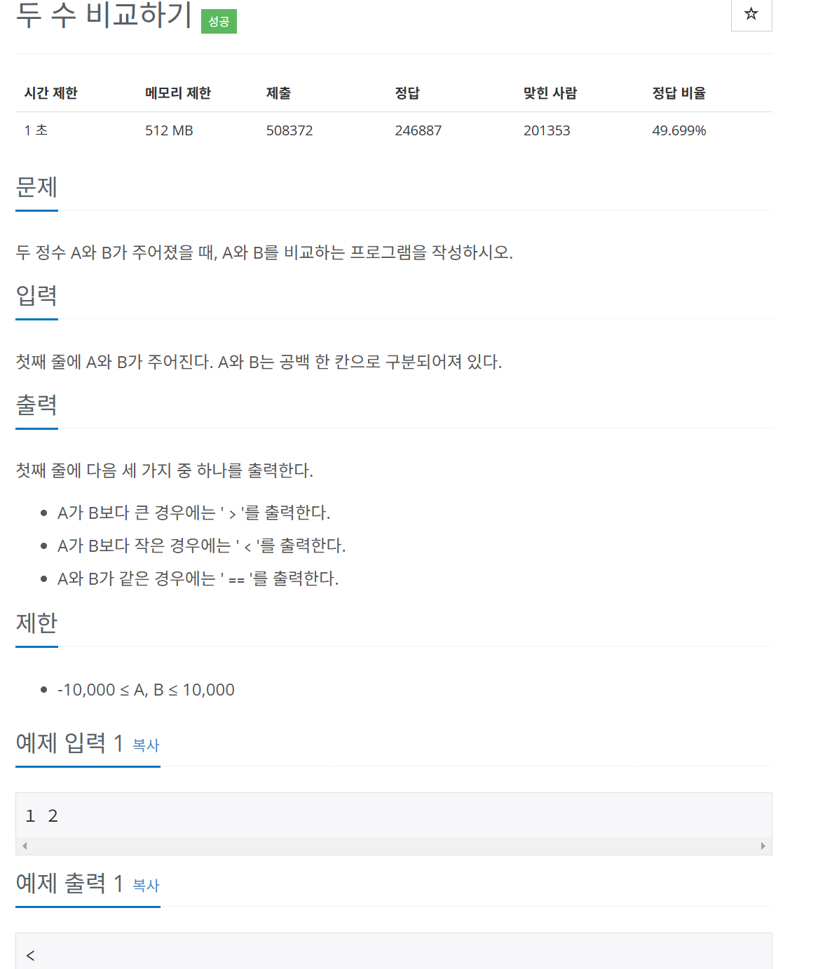 else if(A<B) System.out.println("<");