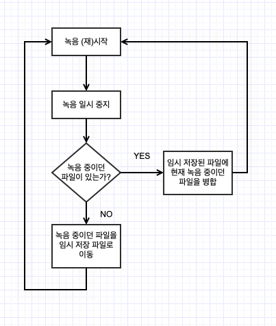 위와 같은 플로우가 발생한 이유는 녹음 일시 중지 상태에서 이미 녹음 된 영역에 대해서 덮어쓰기 녹음을 가능하게 하기 위함이었고, 내 머리에서 나온 최적의 방법이었다..!