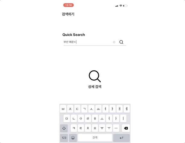 그럼 실제 구현된 앱에서 검색로직을 확인해 보도록 하겠다. 아래 gif 이미지를 보면 검색한 문장과 가장 관련성이 높은 하우스이 제일 상단에 위치하게 되고 그 밑으로 유사한 하우스들이 정렬되는 것을 확인할 수 있다.