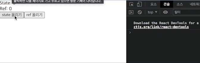 이처럼 ref를 올렸을 때에는 페이지 렌더링이 되지 않는 것을 확인할 수 있다.