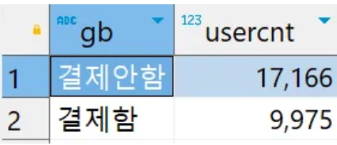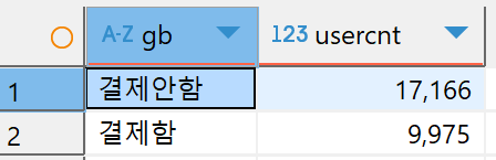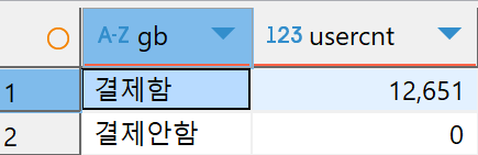 일단 값도 틀리고 결제안함은 아예 값이 0이 나와버렸다.(왜그런거지,,?)