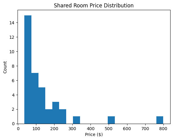 plt.title('Shared Room Price Distribution')