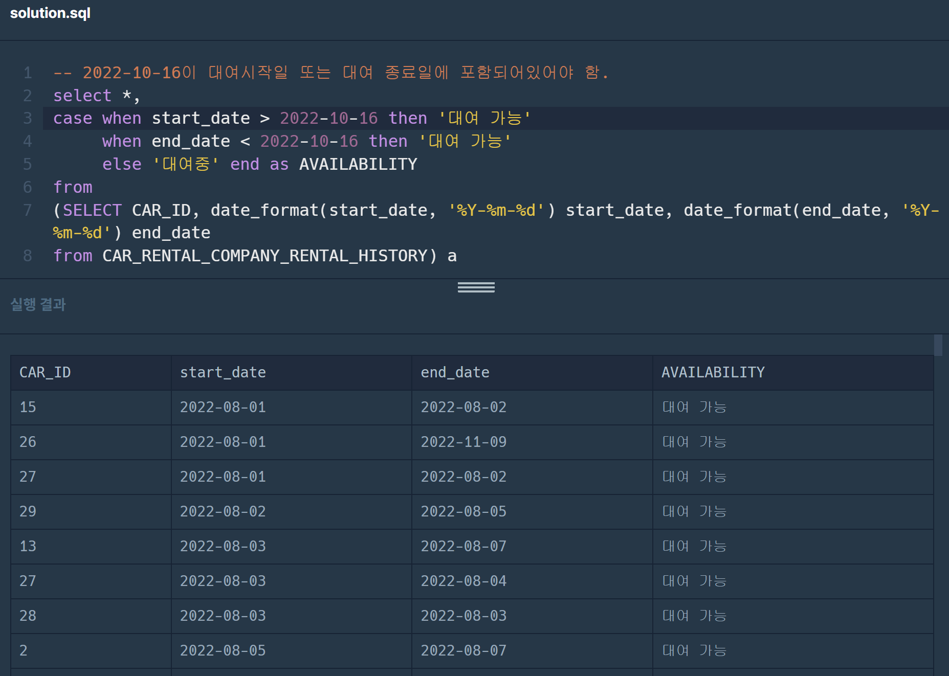 그리고 오늘 오전에 풀었던 sql 코드카타: