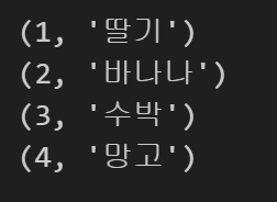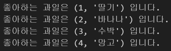 저 변수안에 인덱스값과 리스트 안에 있는 값이 같이 나옴.