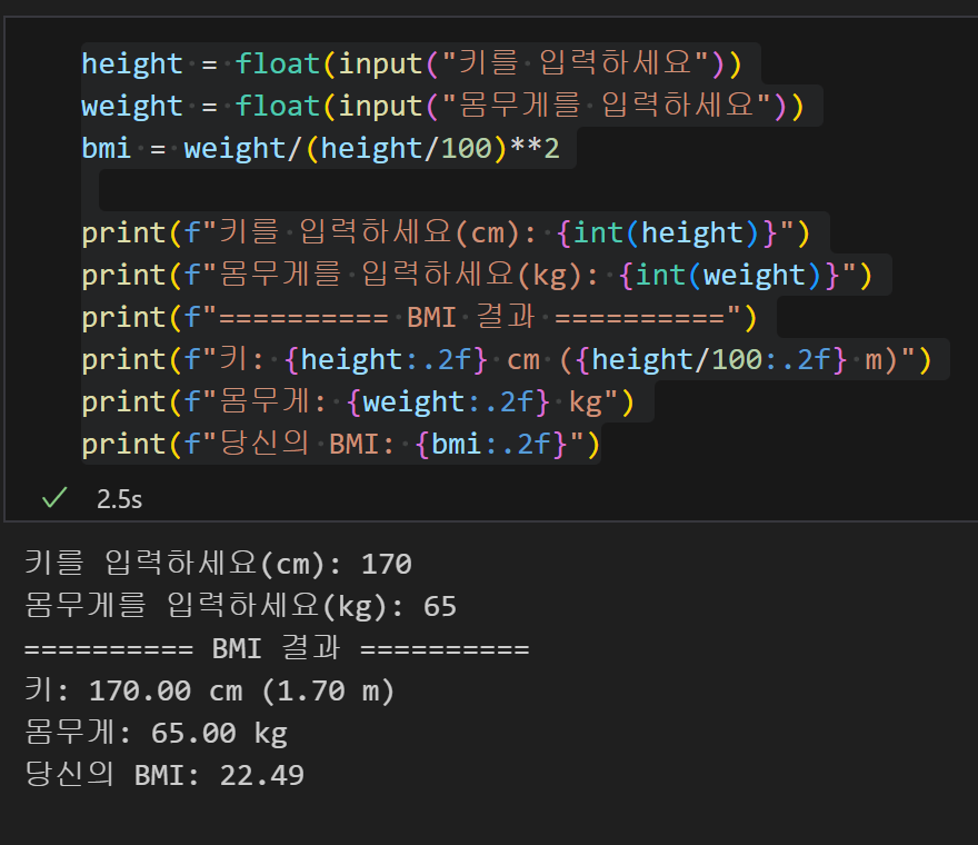 처음 작성한 코드. 분명 :2f를 설정해주었는데, 출력값을 보았을 때 내가 기대한 대로 나오지 않는다.